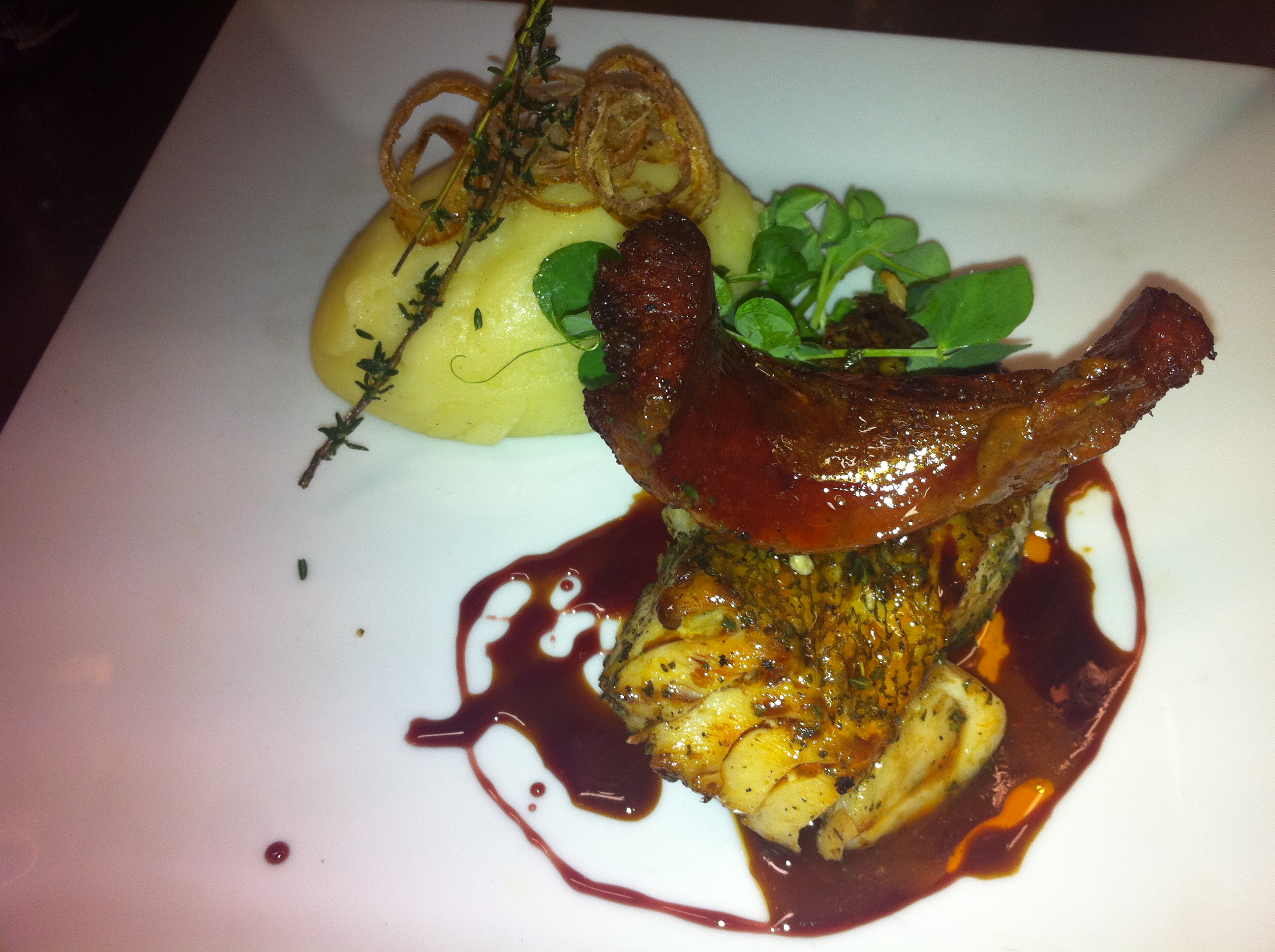 Around our table, mains included Herb infused butter roasted cod fillet with creamed potato, and grilled chorizo (£15.95) - a generous curl of chorizo sausage adding a fiery bite to a perfectly cooked, creamy white cod fillet.