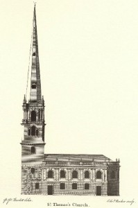 St Thomas’ Church, consecrated in 1750, towered 258 feet above the world’s first wet dock, just over the road in Park Lane.