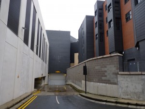 But wander just a few meters down its length and the road, squeezed between the steel skeletons of Liverpool ONE’s service buildings, disappears underground to meet the Q Park emergency access route. It springs back to the surface, like some subterranean water course, just outside the entrance to Waterstones.