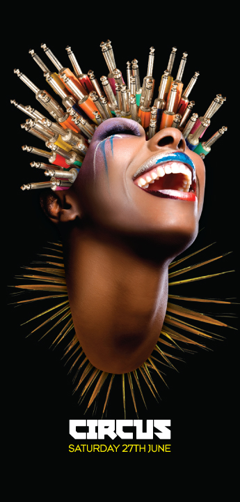 I’ve been designing the Circus flyers since 2005 and it all came about by chance. I was a regular at Circus and Chibuku in my student days and then became involved with the clubby running their guest list on a Saturday night. At the end of my first night I was talking to promoters Rich and Yousef who mentioned they were looking for a new designer and if I was interested I could give it a go. I designed the first flyer and the rest is history!